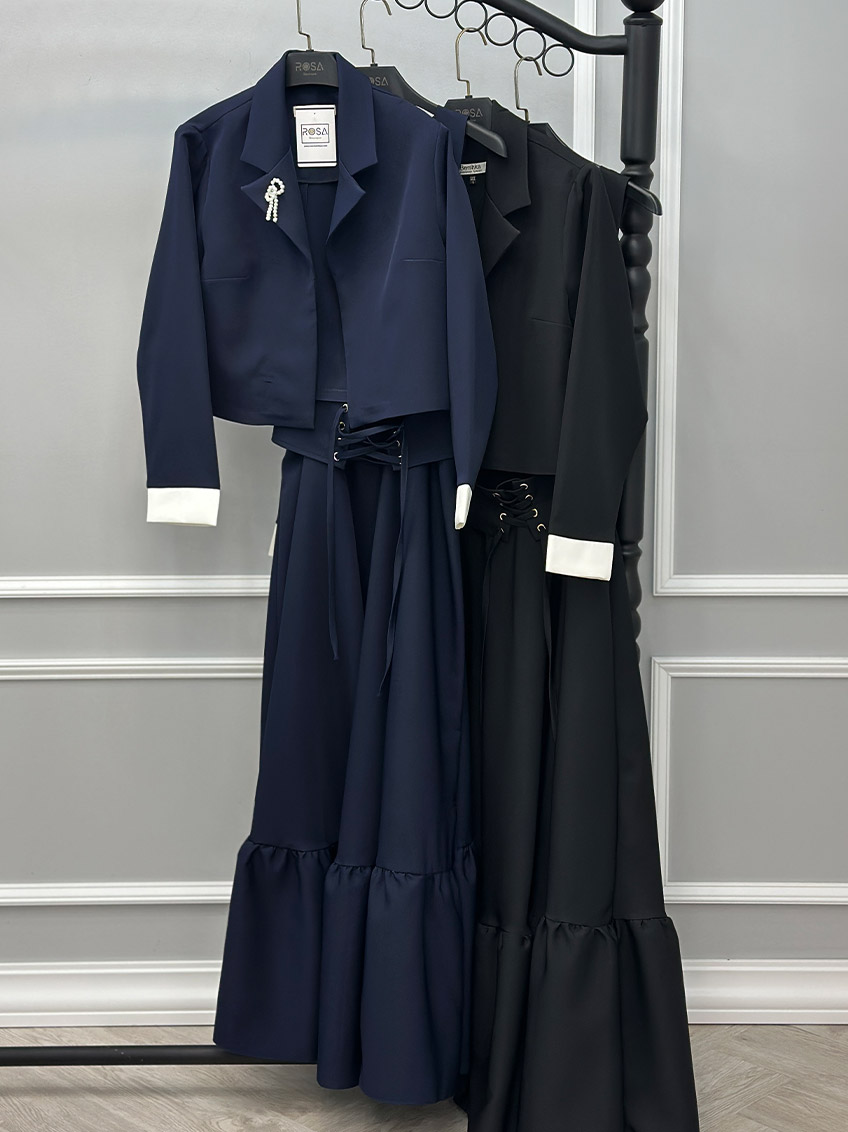 - دو تیکه شامل پیراهن ساس بندی و کراپ کت می باشد.